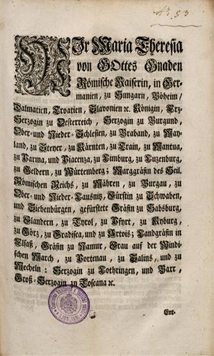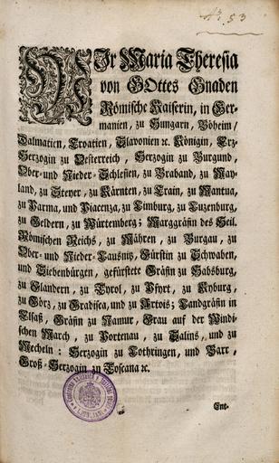 Zbirka raznih patentov, odlokov, predpisov, norm, navodil, okrožnic ipd., ki so jih izdali Karl VI., Marija Terezija in Jožef II.
