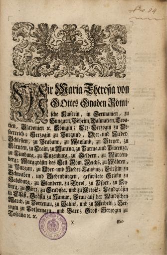 Zbirka raznih patentov, odlokov, predpisov, norm, navodil, okrožnic ipd., ki so jih izdali Karl VI., Marija Terezija in Jožef II.