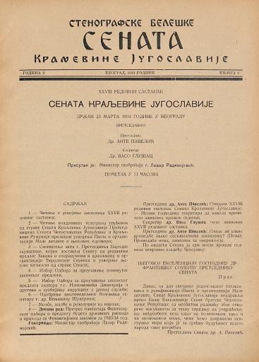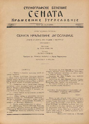 SI AS 2058/7, Stenografske beležke Senata Kraljevine Jugoslavije, 1933