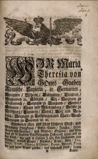 Zbirka raznih patentov, odlokov, predpisov, norm, navodil, okrožnic ipd., ki so jih izdali Karl VI., Marija Terezija in Jožef II.