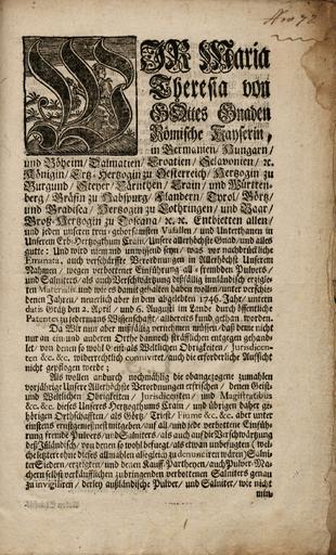 Zbirka raznih patentov, odlokov, predpisov, norm, navodil, okrožnic ipd., ki so jih izdali Karl VI., Marija Terezija in Jožef II.