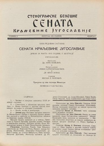 SI AS 2058/7, Stenografske beležke Senata Kraljevine Jugoslavije, 1933