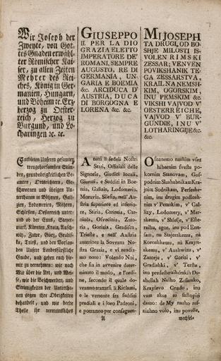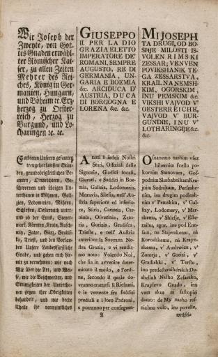 Zbirka raznih patentov, odlokov, predpisov, norm, navodil, okrožnic ipd., ki so jih izdali Karl VI., Marija Terezija in Jožef II.