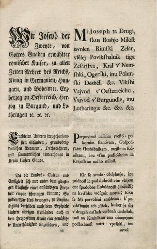 Zbirka raznih patentov, odlokov, predpisov, norm, navodil, okrožnic ipd., ki so jih izdali Karl VI., Marija Terezija in Jožef II.