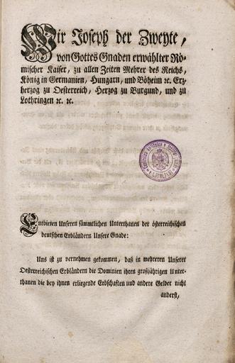 Zbirka raznih patentov, odlokov, predpisov, norm, navodil, okrožnic ipd., ki so jih izdali Karl VI., Marija Terezija in Jožef II.