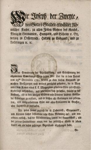 Zbirka raznih patentov, odlokov, predpisov, norm, navodil, okrožnic ipd., ki so jih izdali Karl VI., Marija Terezija in Jožef II.