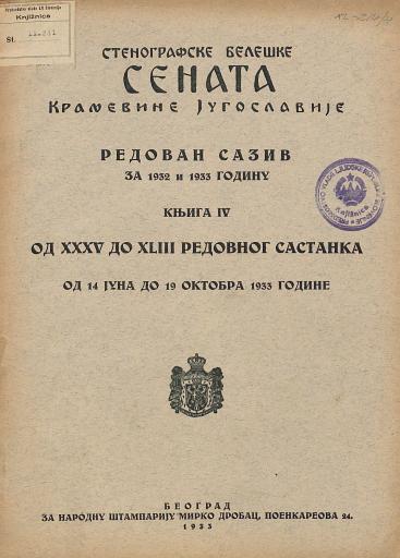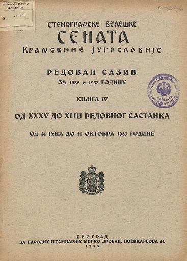 SI AS 2058/8, Stenografske beležke Senata Kraljevine Jugoslavije, 1933