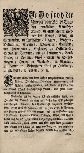Zbirka raznih patentov, odlokov, predpisov, norm, navodil, okrožnic ipd., ki so jih izdali Karl VI., Marija Terezija in Jožef II.