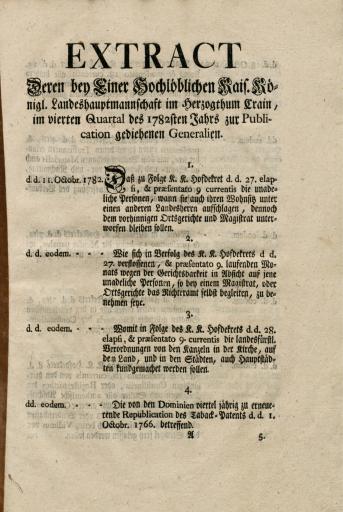 • Extract deren bey ... Landeshauptmannschaft im Herzogthum Crain ... zur Publication gediehenen Generalien.