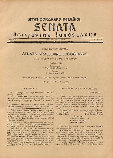 SI AS 2058/8, Stenografske beležke Senata Kraljevine Jugoslavije, 1933
