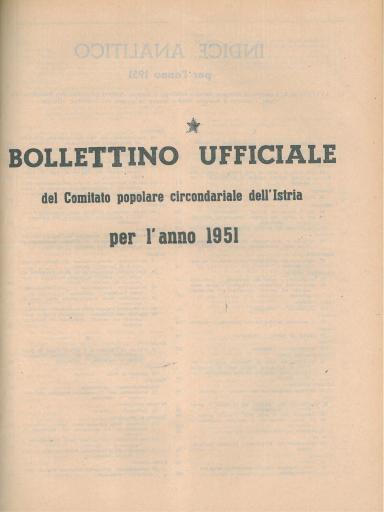 • Bollettino ufficiale del Comitato popolare circondariale dell'Istria per l'anno 1951