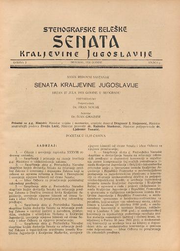 SI AS 2058/8, Stenografske beležke Senata Kraljevine Jugoslavije, 1933