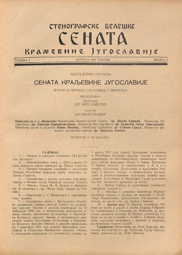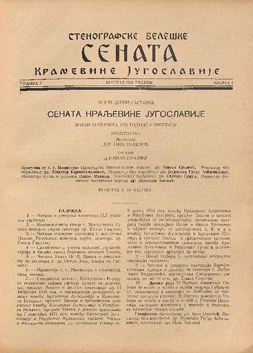 SI AS 2058/8, Stenografske beležke Senata Kraljevine Jugoslavije, 1933