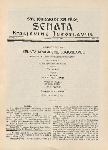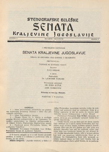 SI AS 2058/9, Stenografske beležke Senata Kraljevine Jugoslavije, 1933-1934