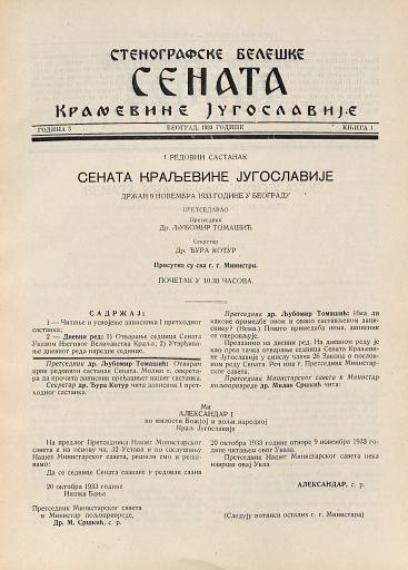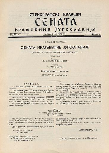 SI AS 2058/9, Stenografske beležke Senata Kraljevine Jugoslavije, 1933-1934