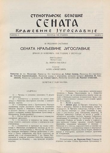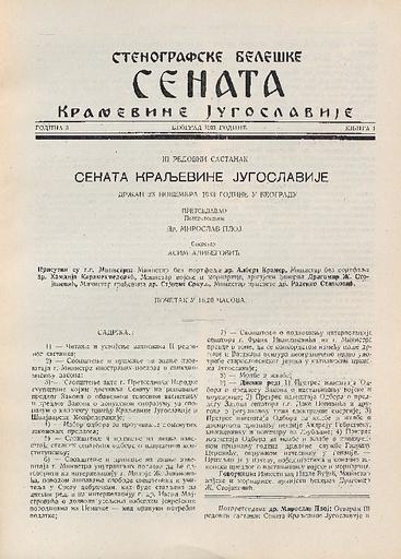 SI AS 2058/9, Stenografske beležke Senata Kraljevine Jugoslavije, 1933-1934