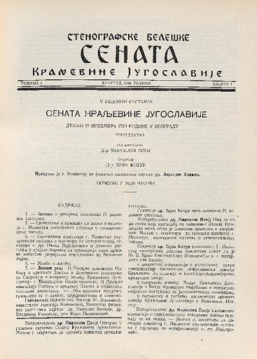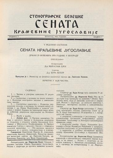 SI AS 2058/9, Stenografske beležke Senata Kraljevine Jugoslavije, 1933-1934