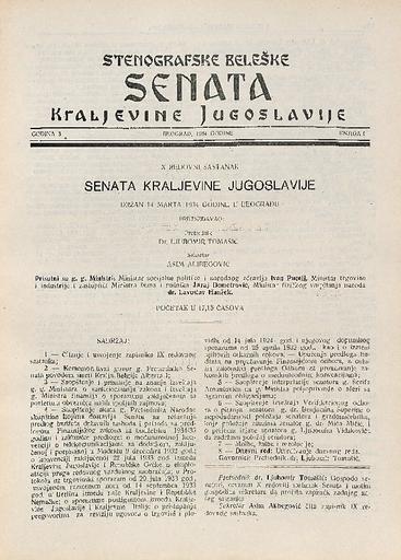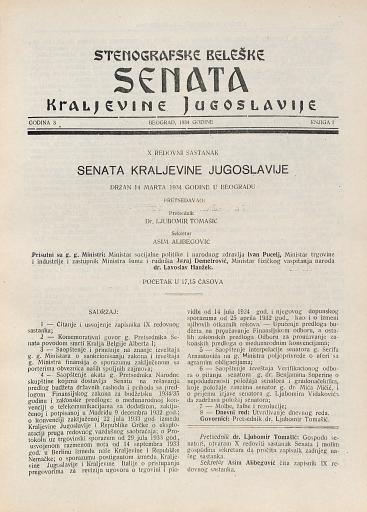 SI AS 2058/9, Stenografske beležke Senata Kraljevine Jugoslavije, 1933-1934