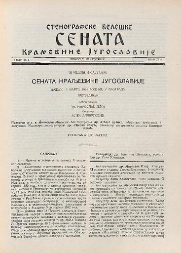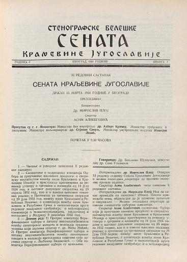 SI AS 2058/9, Stenografske beležke Senata Kraljevine Jugoslavije, 1933-1934
