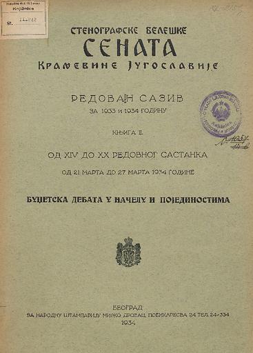 SI AS 2058/10, Stenografske beležke Senata Kraljevine Jugoslavije, 1934