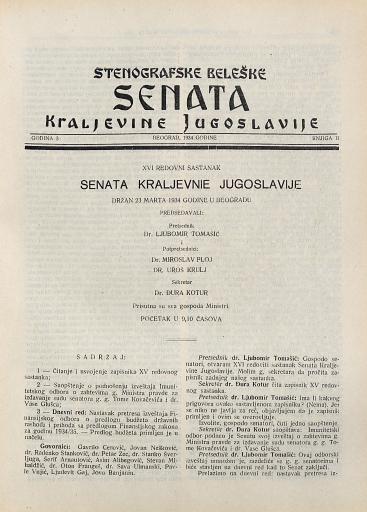 SI AS 2058/10, Stenografske beležke Senata Kraljevine Jugoslavije, 1934