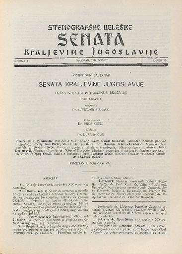 SI AS 2058/10, Stenografske beležke Senata Kraljevine Jugoslavije, 1934