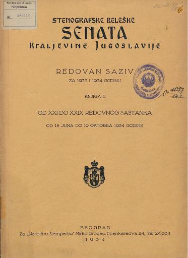 SI AS 2058/11, Stenografske beležke Senata Kraljevine Jugoslavije, 1934