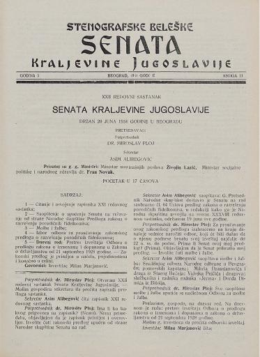SI AS 2058/11, Stenografske beležke Senata Kraljevine Jugoslavije, 1934