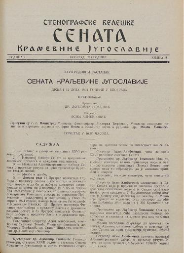 SI AS 2058/11, Stenografske beležke Senata Kraljevine Jugoslavije, 1934