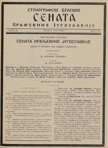 SI AS 2058/11, Stenografske beležke Senata Kraljevine Jugoslavije, 1934
