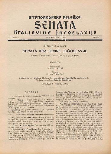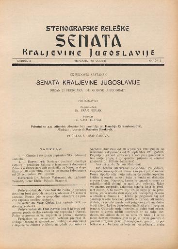 SI AS 2058/6, Stenografske beležke Senata Kraljevine Jugoslavije, 1933