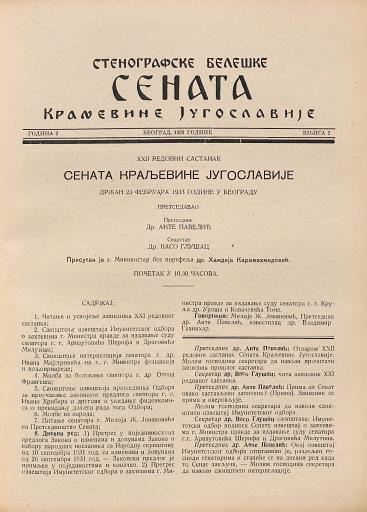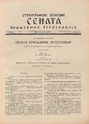 SI AS 2058/6, Stenografske beležke Senata Kraljevine Jugoslavije, 1933