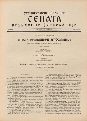 SI AS 2058/6, Stenografske beležke Senata Kraljevine Jugoslavije, 1933