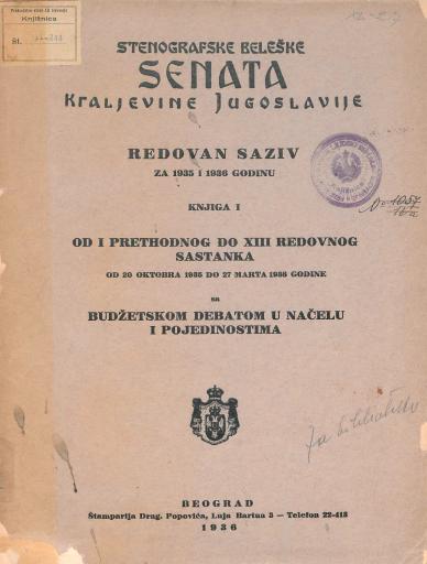 SI AS 2058/13, Stenografske beležke Senata Kraljevine Jugoslavije, 1935-1936
