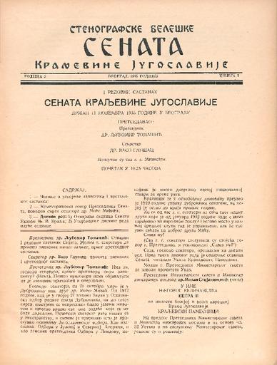 SI AS 2058/13, Stenografske beležke Senata Kraljevine Jugoslavije, 1935-1936