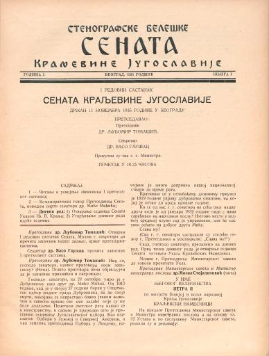 I. redovni sastanak (11. novembar 1935, Beograd)