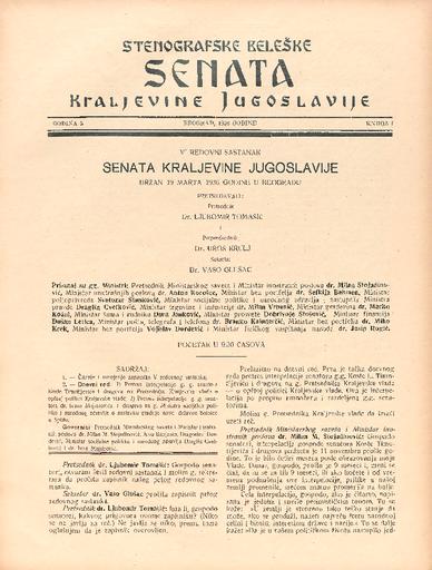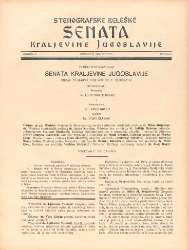 SI AS 2058/13, Stenografske beležke Senata Kraljevine Jugoslavije, 1935-1936