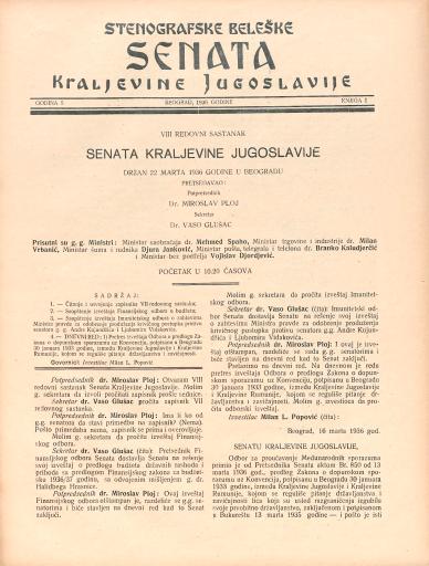 SI AS 2058/13, Stenografske beležke Senata Kraljevine Jugoslavije, 1935-1936