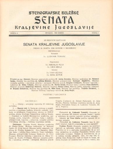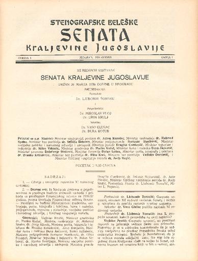 SI AS 2058/13, Stenografske beležke Senata Kraljevine Jugoslavije, 1935-1936