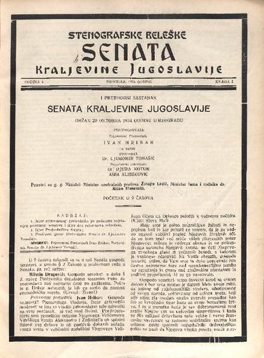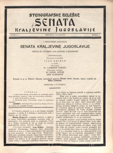 SI AS 2058/12, Stenografske beležke Senata Kraljevine Jugoslavije, 1934-1935