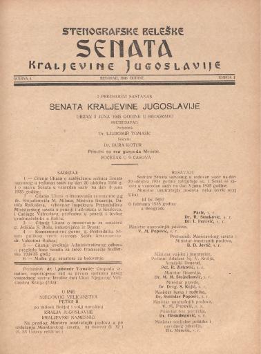 SI AS 2058/12, Stenografske beležke Senata Kraljevine Jugoslavije, 1934-1935