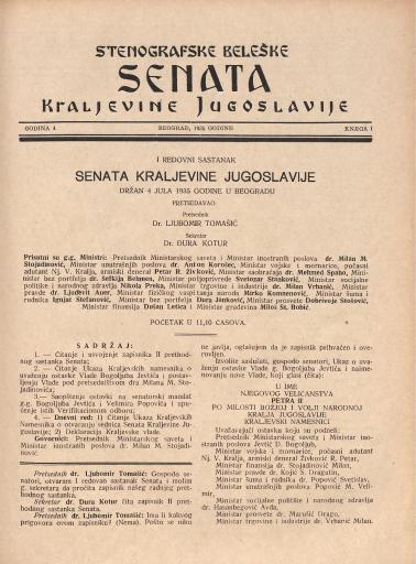 SI AS 2058/12, Stenografske beležke Senata Kraljevine Jugoslavije, 1934-1935
