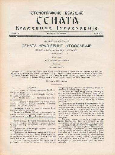 SI AS 2058/16, Stenografske beležke Senata Kraljevine Jugoslavije, 1937