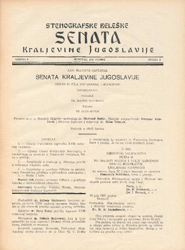 SI AS 2058/16, Stenografske beležke Senata Kraljevine Jugoslavije, 1937