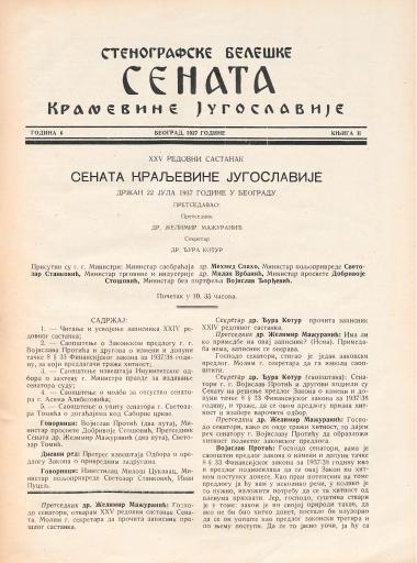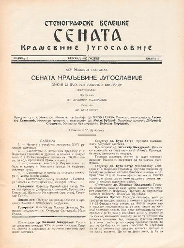 SI AS 2058/16, Stenografske beležke Senata Kraljevine Jugoslavije, 1937