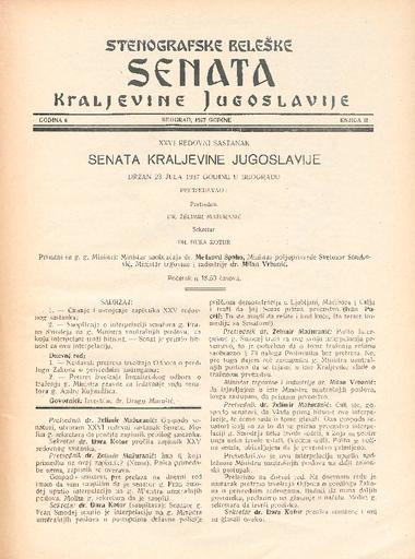 SI AS 2058/16, Stenografske beležke Senata Kraljevine Jugoslavije, 1937