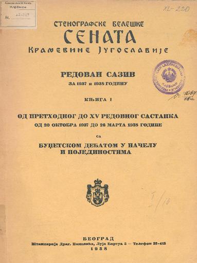 SI AS 2058/17, Stenografske beležke Senata Kraljevine Jugoslavije, 1937-1938