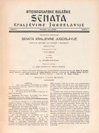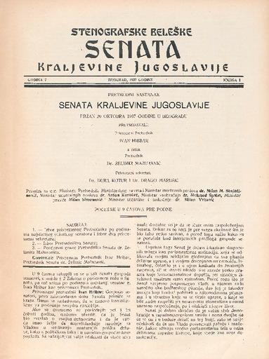 SI AS 2058/17, Stenografske beležke Senata Kraljevine Jugoslavije, 1937-1938