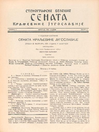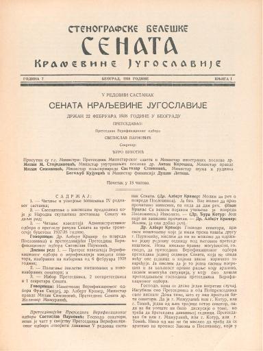 SI AS 2058/17, Stenografske beležke Senata Kraljevine Jugoslavije, 1937-1938