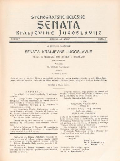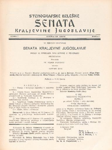 SI AS 2058/17, Stenografske beležke Senata Kraljevine Jugoslavije, 1937-1938